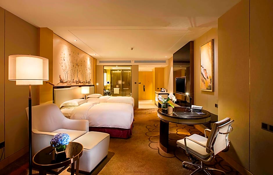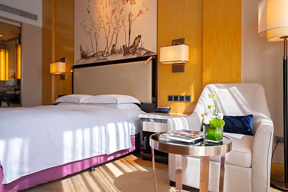 offering a wider stunning view of Yangtze River on higher floor from floor-to-ceiling windows, this room features a 42-inch flat-scree TV, complimentary mineral water, tea and coffee. Private bathroom comes with a rain shower and a separated bathtub.